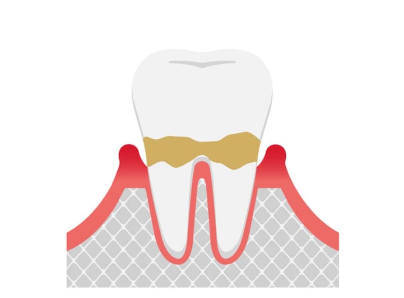 軽度の歯周炎では歯ぐきの炎症が進み、歯と歯ぐきの間に溝ができます。みがくと出血や腫れがみられます。治療はスケーリング(歯石除去)が基本です。