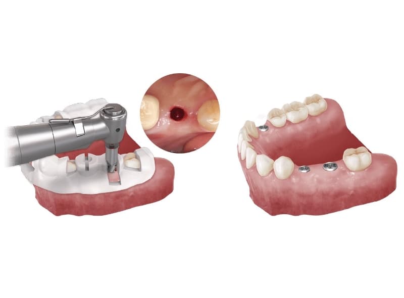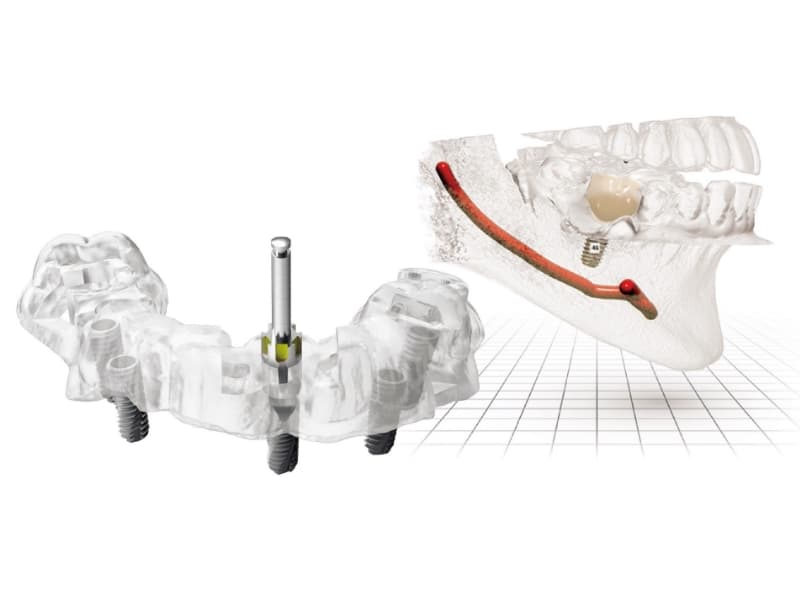 「One Guideテンプレート」を患者さまの口内に装着し、ガイドに沿ってインプラントを埋め込むと、手術は完了となります。