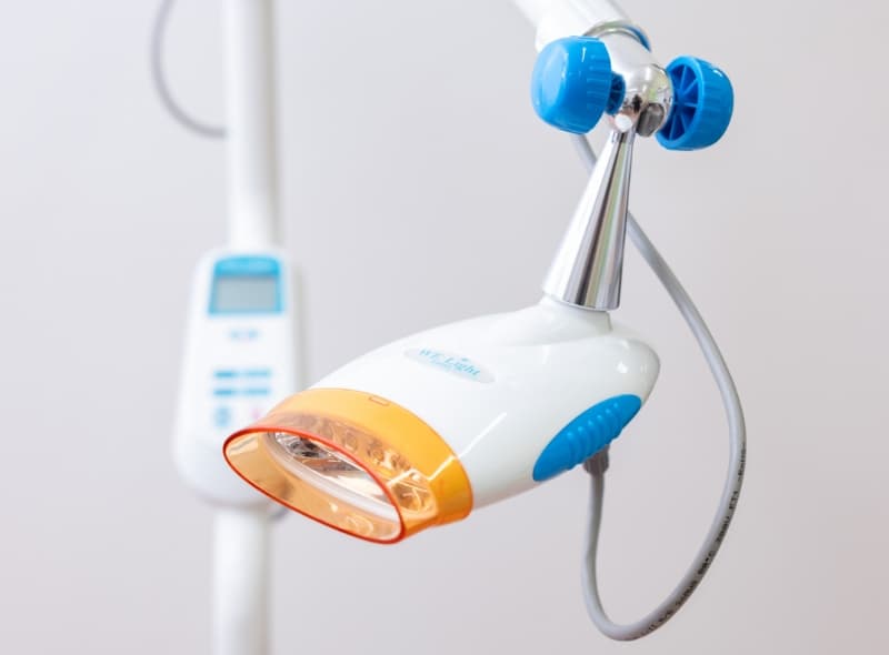 専用の薬剤と組み合わせて歯を白くするための機器です。LEDの光を当てることで薬剤の効果を高め、短時間で明るい歯へ導きます。
